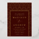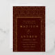 Elegant, art deco wedding invitation featuring a gold foil arch pattern with a burgundy background. Personalise the modern wedding invitations with your names and wedding details in gold foil lettering.