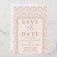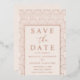 Elegant, art deco wedding save the date featuring a rose gold foil arch pattern with a cream-coloured background. Personalise the modern art deco save the dates with your names and wedding details in rose gold foil lettering.