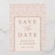 Elegant, art deco wedding save the date postcard featuring a rose gold foil arch pattern with a cream background. Personalise the front of the modern art deco save the date postcard with your names and wedding date in rose gold foil lettering. The back of the foil save the date postcard features your return address and wedding details such as the date, location, wedding website, etc. Designed to coordinate with our Modern Arch Deco wedding collection.