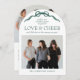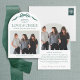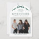 Modern Arch Family Holiday Photo Card with Elegant Green Bow Design