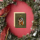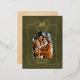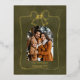 A festive gold foil frame topped with a bow will set off your family Christmas photo on this stylish and modern holiday postcard. Your holiday photo will appear inside an arch-shaped template. Below the photo, there's a template for your family name and the year in fun casual typography. A green leather bring background makes this modern postcard feel luxurious and special. The back is a light beige leather print.