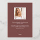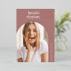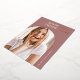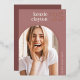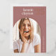 Modern photo graduation announcement features a vertical or portrait orientated photo in a unique arched layout, on a dusty rose pink background accented with rose gold foil trim. The graduate's name and graduation year appear at the top, with the school name at the lower right. Add a personal message to the back, along with an additional photo.