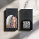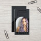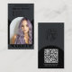 A bold and modern business card design featuring a sleek black background with a chic arch frame and elegant gold typography. The front includes a photo space and stylish branding, while the back features a QR code for quick access to appointments, price lists, or portfolios. Perfect for makeup artists, hairstylists, lash and brow technicians, or beauty professionals who want to make a strong first impression with a trendy, high-end look. A practical and stylish way to connect with clients instantly.