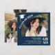 This modern navy blue graduation invitation features a bold arched photo layout paired with a clean, editorial-style collage on the back. The deep blue background and crisp white typography give it a timeless, tailored look that works beautifully for both high school and college celebrations. The five-photo format allows the graduate to showcase different moments, from portraits to candid shots, creating a balanced and personal design. All text is easy to edit, so the layout can be adjusted for open houses, formal ceremonies, or casual gatherings. The structured grid and strong color contrast make it ideal for families who want a polished, photo-forward announcement that still feels contemporary.