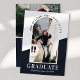Share your pride and joy of a high school or college graduation with these modern arch photo announcement cards. Photographs and wording are simple to personalise using the template provided. This template can be customised with any details of your choice, such as party invitation info, parents' names, special honours, degree title, favourite inspirational quote, graduate's contact info, future education plans, or new job position. These elegant graduation announcement cards are a trendy and chic way to share your daughter/sons special day celebration with family and friends - Congratulations to the graduate!