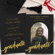 Celebrate your daughter’s graduation in style with this elegant black and gold graduation announcement card, perfect for high school, college, or university graduates. This modern and trendy arch photo graduation invitation features a sophisticated black background with luxurious gold script calligraphy—an eye-catching combination that highlights this important milestone. Customise the design with your graduate’s favourite senior photo and easily add personalised event details with the user-friendly, editable template. Whether you’re planning a graduation party, open house, or sending formal announcements, this printable graduation card is a beautiful way to share her accomplishment with friends and family. Designed by artist Catherine Sweetman, this personalised graduation invitation blends classic elegance with contemporary style, creating a keepsake you’ll treasure. Ideal for 2025 graduation announcements, senior photo cards, black and gold graduation invitations, and custom grad party invites for daughters. A perfect choice for parents looking for stylish graduation cards for girls with photos.