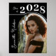 A modern arch photo graduation party poster features your graduation year in a bold font and your name in a chic cursive script on a black background.