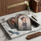 --- Pro tip: Use an app like remove.bg to strip your photo background and create a transparent image for a seamless, polished look within the arch frame.