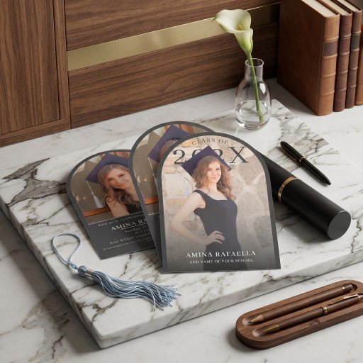 --- Fully editable and photo-ready, you can customize the graduate's name, class year, event date, time, and venue details to make each card uniquely yours. The arch photo layout gives portrait shots a sophisticated, gallery-worthy framing that elevates even casual senior photos.