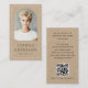 Modern, vertical, Kraft paper business cards with your arch shaped photo, name and title on the front, with a thin white border along the edge of the card. Customisable template fields for your contact information, social media and QR code on the back. You can change background and font colours, move and resize elements with the design tool.