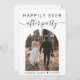 Modern elopement or small wedding announcement and reception / party invitation. The front features your photo in a trendy boho-inspired arch frame and "Happily Ever After Party" in simple typography and a stylish script with swashes. Add your first names and wedding or reception date. On the back, customise your details and add your names in a signature-like script.