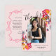 Modern Arch Pink Floral Photo Graduation Party Thank You Card