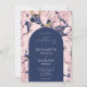 Modern Arch Pink Navy Blue Marble Wedding Invitation