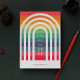 A minimalist and simple multi coloured New Year card, with a modern arch design.