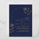 A Minimal and modern line art style floral sketch of flowers Complimented by the navy touch and the golden real foil design.