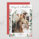 This modern Christmas holiday card features your holiday favourite photo in an arch shape decorated with elegant winter botanicals. To make advance changes, select Personalise -> Edit using Design tool.