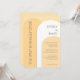 This invitation features three modern arches in warm yellow tones. Perfect for a minimalist desert theme, neutral monochromatic theme, and romantic theme. This invitation template includes the wording "The Wait Is Finally Over". It can be edited to match your wedding / event details.