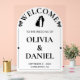 Elevate your entryway with this clean and modern arch wedding welcome sign. Its minimalist layout and trendy curved frame are ideal for contemporary weddings. Personalise with names, date, and location for a sleek finish.