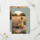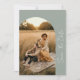 Modern and minimalist design features arched frame photo against a sage background with a slim handwritten calligraphy script, and a 2-photo display. Easily customise your important information along with your favourite photos on front and back. Ideal for any modern wedding theme.