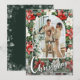 Arched at the top, your favorite photo is outlined in white on a background of red and white poinsettias and features Merry Christmas in chic lettering along with your names on the bottom.