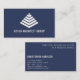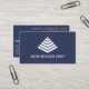 A minimal business card suitable for an architect, engineer, builder & more. The modern design features a white pyramid logo on the front with a navy background and space for your business name. On the back your name, contact information, & the option to add a tagline or services offered.
