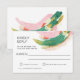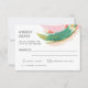 This contemporary style wedding RSVP card design is a miniature work of art with it's abstract paint strokes in a colourful combination of pink, green, red, gold, and beige. It has a modern minimalist appeal with an artistic flair. Personalise the text template with your required response date.
