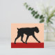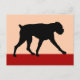 A minimalist modern art design of a silhouette of a boxer dog in black and red colours.