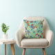 Modern Art Colourful Blue Red Flowers Sage Green Cushion