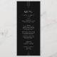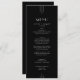 This sleek black wedding menu from the Everly Collection features crisp white type, geometric art deco accents, and editorial spacing. The simple thin triple-line motifs frame elegant text for a refined, modern minimalist, evening-ready look.