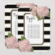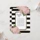 These Table Assignment seating cards can be used on each table or in the entry to your reception. They are an inexpensive way to add glitz and glam to your reception! These Table number cards can be framed, place on a holder or used in many ways to direct your guests to their table seating for your formal wedding reception, bridal shower or formal business event. Simply change the table number and guest list for each one and place it in your shopping cart. Shown here with seating for 10 per table, you can adjust the list to your needs and simply drag and centre the list when your'e done by using the "customise" feature. This design has a hand a painted floral design with blush pink hydrangea blossoms. These flowers grew in Audrey Jeanne's gardens and were picked fresh to paint from life. A bold black and white, wide striped background is paired with an art deco, notched corner style frame that is outlined in a faux gold glitter. Artwork and graphic design copyright, Audrey Jeanne Roberts, all rights reserved.