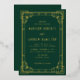Modern art deco wedding invitations featuring your wedding details framed by a gold foil art deco frame with a green background. Designed to coordinate with our Modern Art Deco wedding collection.