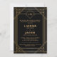 Set the tone for your celebration with this Modern Art Deco Wedding Invitation, featuring a luxurious black and gold colour palette. With bold geometric accents, elegant typography, and the couple's initials, it captures the essence of vintage retro charm while embracing a modern Great Gatsby-inspired aesthetic. Perfect for couples seeking a timeless and sophisticated art deco wedding theme.