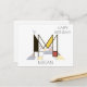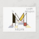 Fantastic, funny, artistic monogram. Here is the letter "M". Neoplasticism style, or De Stijl, line and colour artistic decoration, the funny bird sits on the letter. The field of art is located under the letter. The template name "MEGAN" is located under the image. Happy Birthday! text near the image. You can change or delete all the texts, and you can change the image. Unique, one-of-a-kind postcard for a birthday or another event. Feel free to use the "Edit Design" or "Personalise" (as the case may be) button of the blue colour to change the font, colour, or position of the template text. Be creative, customise, buy one, and be happy!