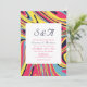 Fusion of retro and modern design featuring colourful swirl marble abstract pattern personalised wedding invitation. Pink purple yellow colour palette. This card is easily editable. If you need help with the customisation of this product or you need more matching products for this collection kindly message me via Zazzle.