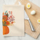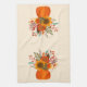 Modern Autumn Flowers in Pumpkin Tea Towel