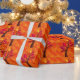 Beautifully wrap, particularly for autumn gift giving occasions such as birthdays. Golden yellow and orange leaves cluster and scatter in the background which pairs perfectly in a modern design of a simple illustrated tree with pink, purple and orange leaves.
