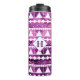Modern Aztec pattern in white over pinkish purple geode crystal print tumbler with your choice of initial letter.