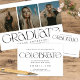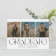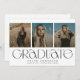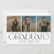This modern three photo graduation announcement features elegant typography "graduate"in black with three photos on a white background. On the back there is invitation text for graduation party / open house which can also be deleted if not needed. Background and text colours are all customisable. This simple yet elegant design really allows your photos to shine by keeping the details minimal.