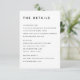 The Aesthetic: Provide your guests with essential information in a cool, sophisticated style with this modern slate enclosure card. This "information hub" utilizes a bold, architectural layout and our signature black Dongle typography to organize your wedding specifics into clean, sophisticated blocks. The muted slate background acts as a gallery-style canvas, ensuring your details are as beautiful as they are functional. Industrial Clarity & Design: This card is engineered for maximum organization. We’ve pre-set the information into three distinct sections: Accommodations, Reception, and Wedding Website. To maintain the "industrial-chic" hierarchy, we recommend entering your details in all caps for the first two sections; then, use lowercase for your wedding website to create a visual contrast that helps the URL stand out. The Branded Monogram: This fully customizable template features a sophisticated "L & G" couple's monogram on the back, serving as a cool, architectural signature for your suite. This designer touch ensures your stationery looks cohesive and professional from every angle. Personalization & Quality: Easily update each block while maintaining the perfectly balanced editorial grid. For a premium, non-reflective finish that enhances the cool tones of the design, I highly recommend our Matte paper stock—its heavy-weight, high-quality feel is the perfect match for the "Signature Palette" aesthetic. A Designer’s Pro-Tip: This enclosure card is designed to sit perfectly behind your invitation and RSVP card. By keeping your secondary details on this dedicated slate card, you allow your main invitation to remain a clean work of art while adding a professional layer of color to your suite.