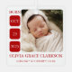Celebrate your newest arrival with this personalized Baby Birth Stats Christmas Ornament, designed to commemorate the most precious details of your baby’s birth. Featuring a clean white background with bold red accents, this square ceramic ornament highlights your baby's name, birth date, time, weight, and length alongside a cherished photo.
