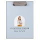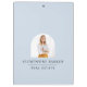 Sleek and minimal baby blue Clipboard design featuring a professional arched photo frame and clean typography. Ideal for realtors, brokers, and real estate professionals to keep notes, client details, and property listings organised. This elegant design adds a personal, branded touch — perfect as office stationery, client gifts, or team branding. Fully customisable with your own photo, name, and business details.