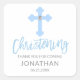 Modern Baby Blue Cross Christening Boy Thank You Square Sticker