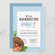 Modern Baby Blue Gingham Barbecue Baby Shower Invitation