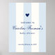 Modern Baby Blue Stripe Heart Valentine Welcome Poster