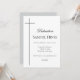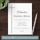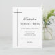 Invite friends and family to celebrate your child's church baby dedication with these minimalist black-and-white invitations. The modern design features an elongated thin cross with your son/daughter's name—accompanied by your ceremony and celebration details. Printable download available, social media options.