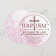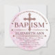 Modern Baptismal Invitation for Baby Girls. Ornate cross with an abstract background of flowers and swirls. Customise this pretty christening/baptism invitation with your own text. Original illustration by pj_design.