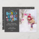 Spread joy with this fun holiday card. Colourful pink, blue, yellow, blue and purple with doodles "baby it's cold outside" and classic typography overlaying charcoal grey. Add your favourite photo. Friends and family will love this one of a kind design holiday card.