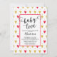 Fun baby shower invitation featuring gold & red hearts adorned with a stylish hand lettered script font. Flip our colourful bridal shower invite over to view a matching heart back.