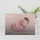 Cute, modern, and simple photo birth announcement featuring a full bleed horizontal landscape photo. On the reverse side is another photo in a frame with additional information you can replace with your custom message.