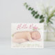 Announce the arrival of your special bundle of joy with this great "Hello Baby" in pink script and sage green typography with soft off white background. Add baby's photo, name, stats on the front and include a message on the back or leave blank and hand write a personal message later. Font colours can be changed - go to customise further. Please email me if you need help making this more your own or to help suit your photo. designsbykatz@gmail.com